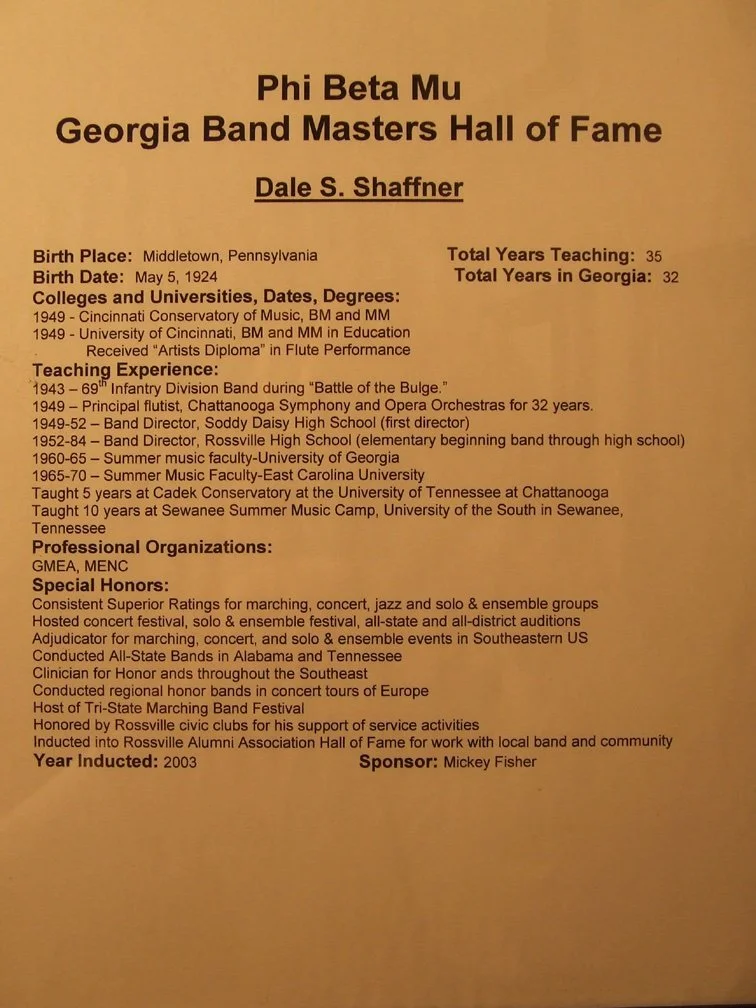 Inducted into Rossville Alumni Association Hall of Fame for work with local band and community