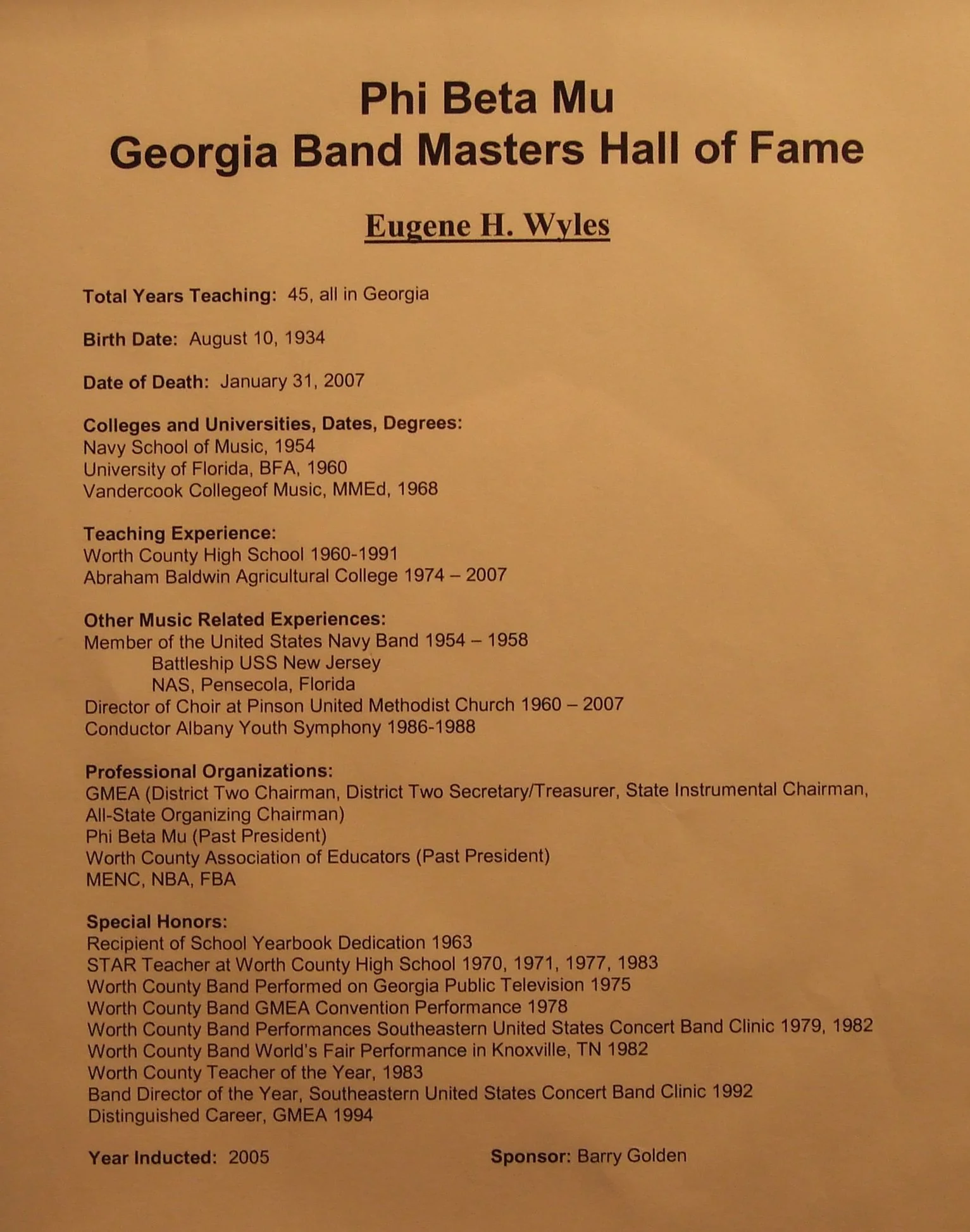 GMEA (District Two Chairman, District Two Secretary/Treasurer, State Instrumental Chairman, All-State Organizing Chairman)